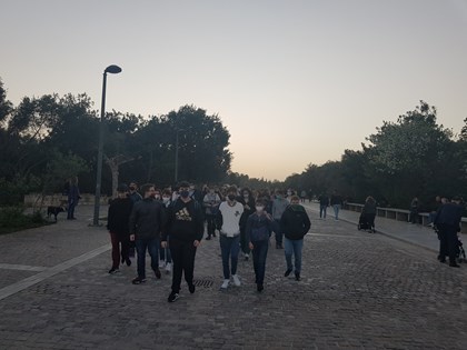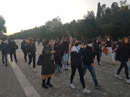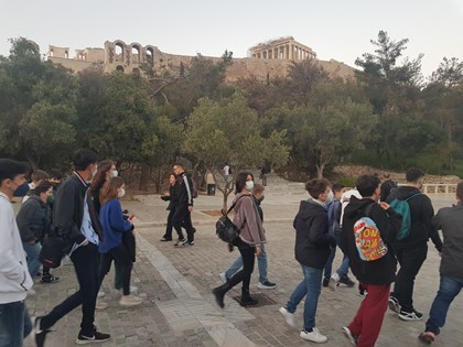 Ακολούθως, μαζί με τους συνοδούς καθηγητές τους, περπάτησαν στο ιστορικό κέντρο της Αθήνας, κάνοντας βόλτα στις περιοχές της Πλάκας, του Μοναστηρακίου και του Θησείου και καταλήγοντας για το καθιερωμένο πλέον γεύμα στα ψητοπωλεία της οδού Μητροπόλεως στο Μοναστηράκι.