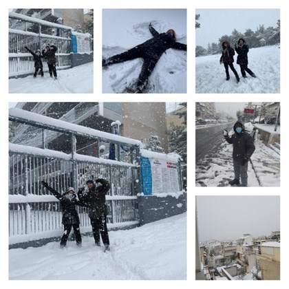 Έτσι, οι μαθητές του σχολείου μας αξιοποίησαν στο έπακρο το σπάνιο φαινόμενο της έντονης χιονόπτωσης στην Αθήνα και το απόλαυσαν με το παραπάνω, όπως φαίνεται και από τις πολλές και δημιουργικές φωτογραφίες που απαθανάτισαν τις στιγμές ξεγνοιασιάς που πέρασαν με συγγενείς και φίλους.