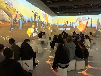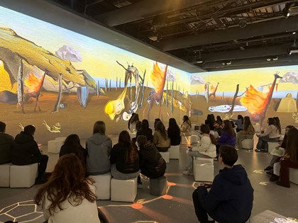 Την Πέμπτη 06/03/2025 οι μαθητές και οι μαθήτριες της Γ Γυμνασίου επισκέφθηκαν την διαδραστική έκθεση για τον Σαλβαντόρ Νταλί «Dali Cybernetics Athens». Τα παιδιά έζησαν μια συναρπαστική εμπειρία, καθώς γνώρισαν την ιδιοφυΐα του υπερρεαλιστή καλλιτέχνη μέσα από 3D προβολές σε οθόνες 360 μοιρών, αίθουσα εικονικής πραγματικότητας και διαδραστικά δωμάτια.