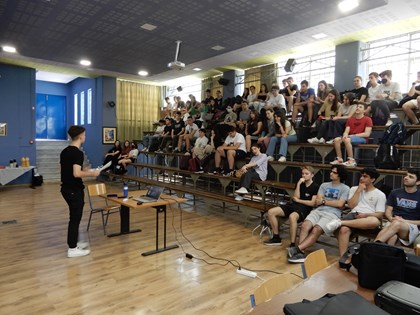 Οι 60 περίπου μαθητές που παρακολούθησαν την ομιλία, είχαν την ευκαιρία να έρθουν σε επαφή με την ειδική θεωρία της σχετικότητας -η οποία προς το παρόν αποτελεί «ταμπού» για το πρόγραμμα σπουδών της μέσης εκπαίδευσης- και να ανακαλύψουν με ποιον τρόπο η θεωρία του Einstein εξηγεί, σχεδόν αυθόρμητα, τον Ηλεκτρομαγνητισμό. Μέσα από απλά παραδείγματα, νοητικά πειράματα και αριστοτεχνικά animation, φτιαγμένα ειδικά για την συγκεκριμένη παρουσίαση, o Χαραλάμπης κράτησε αμείωτο το ενδιαφέρον του ακροατηρίου του για σχεδόν 2 ώρες. Το αφιέρωμα αυτό στη θεωρία της σχετικότητας θα έχει και δεύτερο μέρος, το οποίο θα παρουσιαστεί από τη νέα σχολική χρονιά στο αμφιθέατρο του Λυκείου μας.