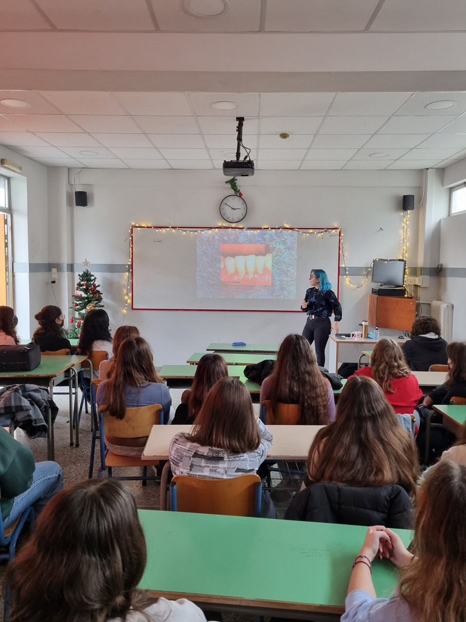 Κατά τη διάρκεια της προγραμματισμένης ομιλίας αναδείχθηκαν οι παθήσεις του στόματος που μαστίζουν συνηθέστερα τον άνθρωπο στη σύγχρονη εποχή, αλλά και πώς η καθημερινή στοματική υγιεινή και η σωστή διατροφή συμβάλλουν στην πρόληψη των καταστάσεων αυτών. Επιπλέον, ακολούθησε και πρακτική επίδειξη στοματικής υγιεινής κατά ομάδες, σε όλους/ες τους/τις μαθητές/τριες του σχολείου μας.