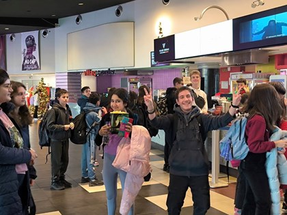 Το απόγευμα της Παρασκευής 13/12/2024, μαθητές και μαθήτριες από την Α και την Β Γυμνασίου του σχολείου μας επισκέφθηκαν τα Village Cinemas στο Ρέντη και παρακολούθησαν την κωμωδία δράσης "Red One". Τα παιδιά τα συνόδευσαν οι καθηγητές και οι καθηγήτριες του σχολείου μας και πέρασαν μαζί τους δημιουργικό χρόνο εκτός του σχολικού προγράμματος.